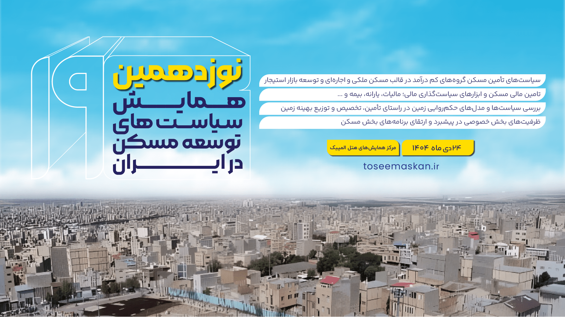 نوزدهمین همایش سیاستهای توسعه مسکن در ایران فرصتی است برای بازاندیشی در یکی از مهمترین محورهای رفاه و توسعه شهری کشور. این همایش با تمرکز بر چهار موضوع کلیدی، تأمین مسکن گروههای کمدرآمد، مسکن استیجاری، نظام تأمین مالی و ابزارهای سیاستگذاری، حکمروایی زمین و تقویت نقش بخش خصوصی، میکوشد مسیرهایی عملی و علمی برای ارتقای کارایی و عدالت در بخش مسکن ترسیم کند.